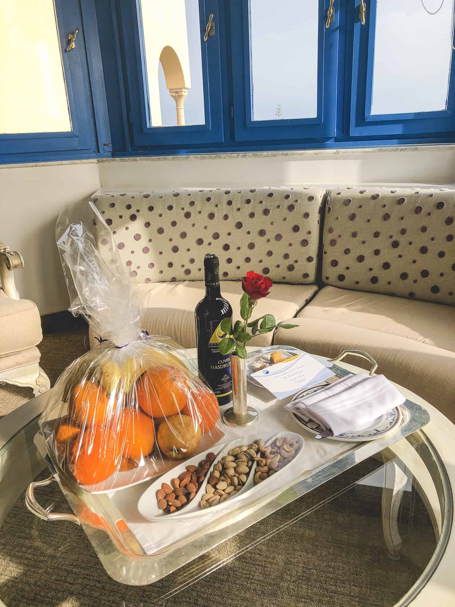 The Ambassador Suite was over 1000 square meters of space and we were completely spoiled with welcome flowers, a fruit and date basket, and a complimentary bottle of wine.